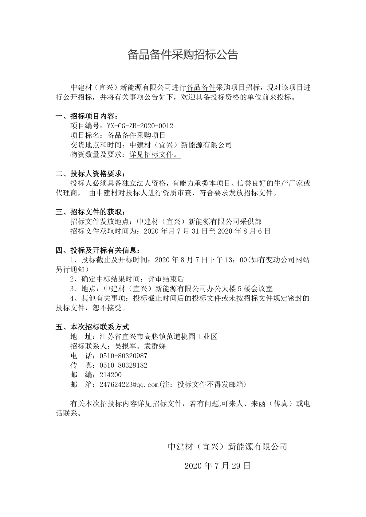 China National Building Materials (Puyang) Optoelectronic Materials Co., Ltd. invites public bidding for property insurance for the year 2020-2021