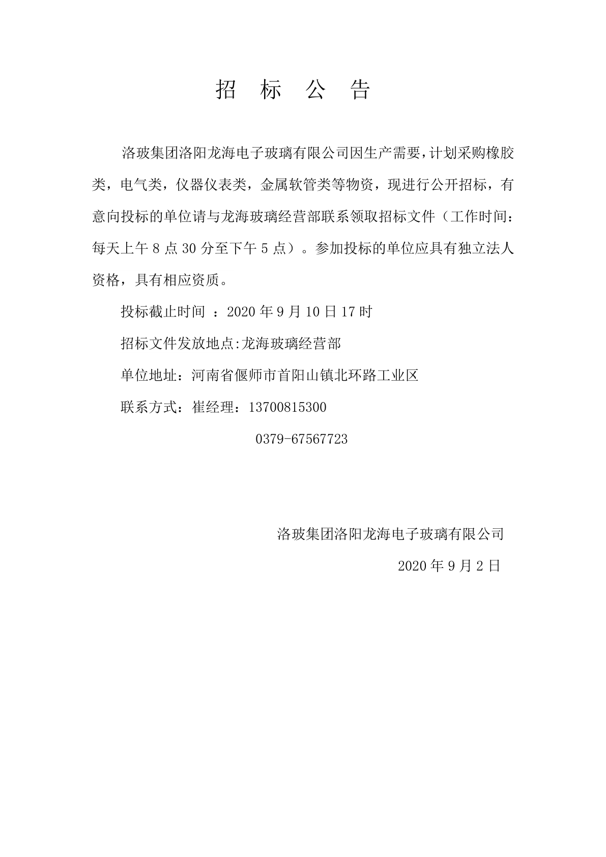 Announcement of Bidding for Procurement of New Energy Silk Screen Auxiliary Materials by China National Building Materials Yixing