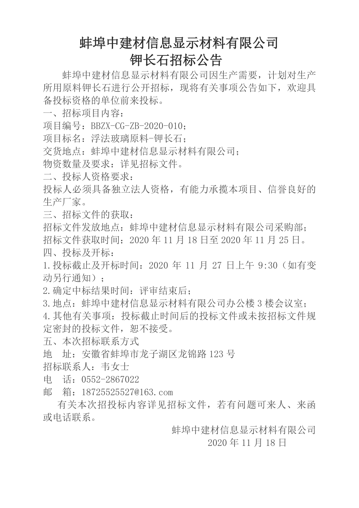 Luobo Group Luoyang Longhai Electronic Glass Co., Ltd. Production Industrial Salt Bidding Announcement