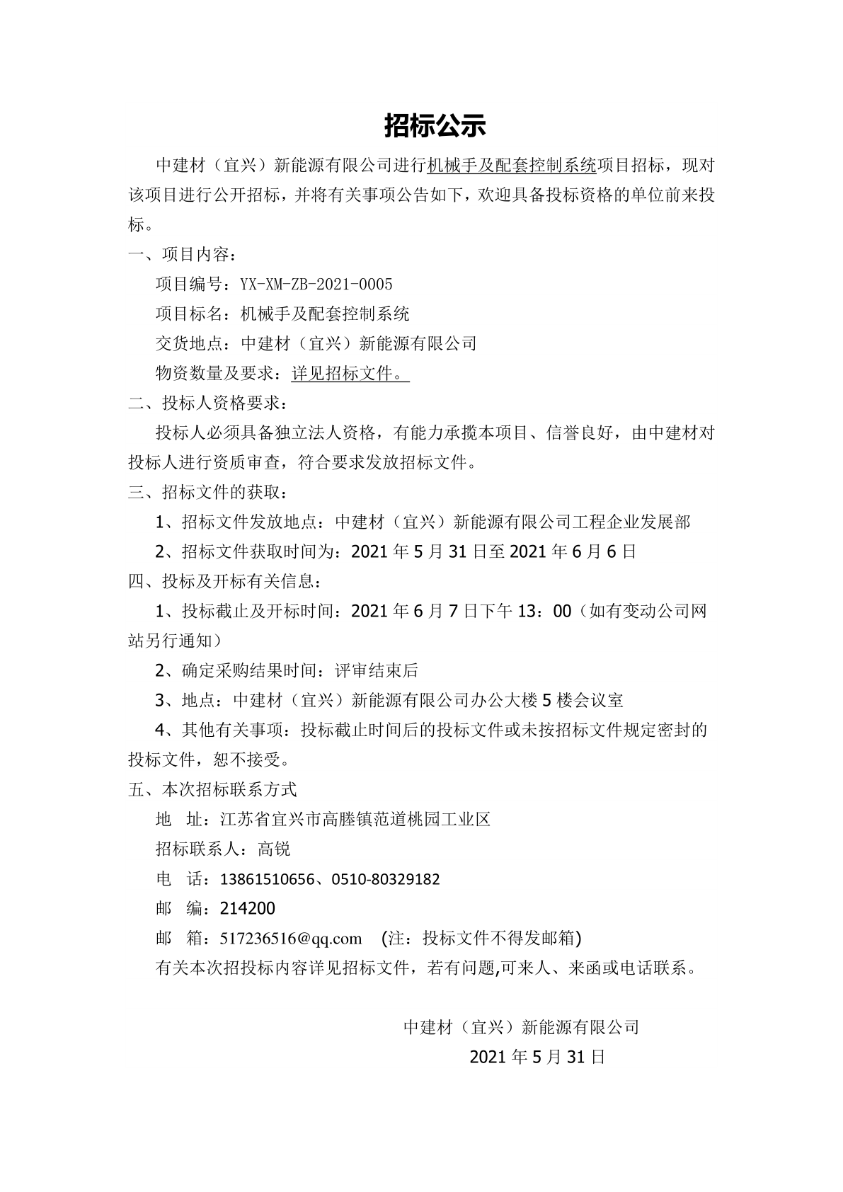 Announcement of Bidding for Procurement of New Energy Spare Parts by China National Building Materials Yixing