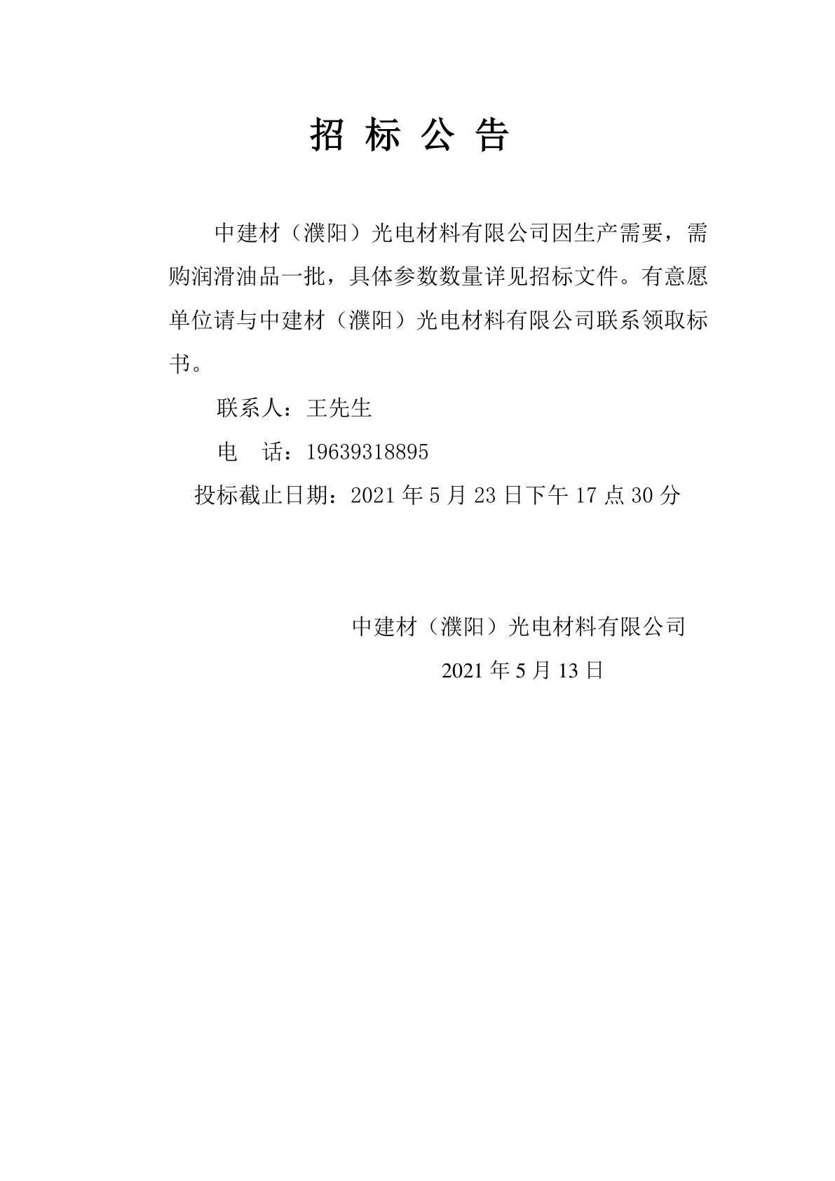 China National Building Materials (Puyang) Optoelectronic Materials Co., Ltd. Tender Announcement for Spare Parts such as Pneumatic and Electrical Instruments
