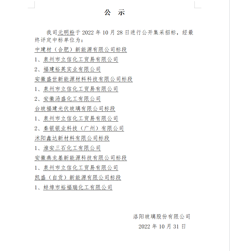 Announcement of winning bid for sodium nitrate