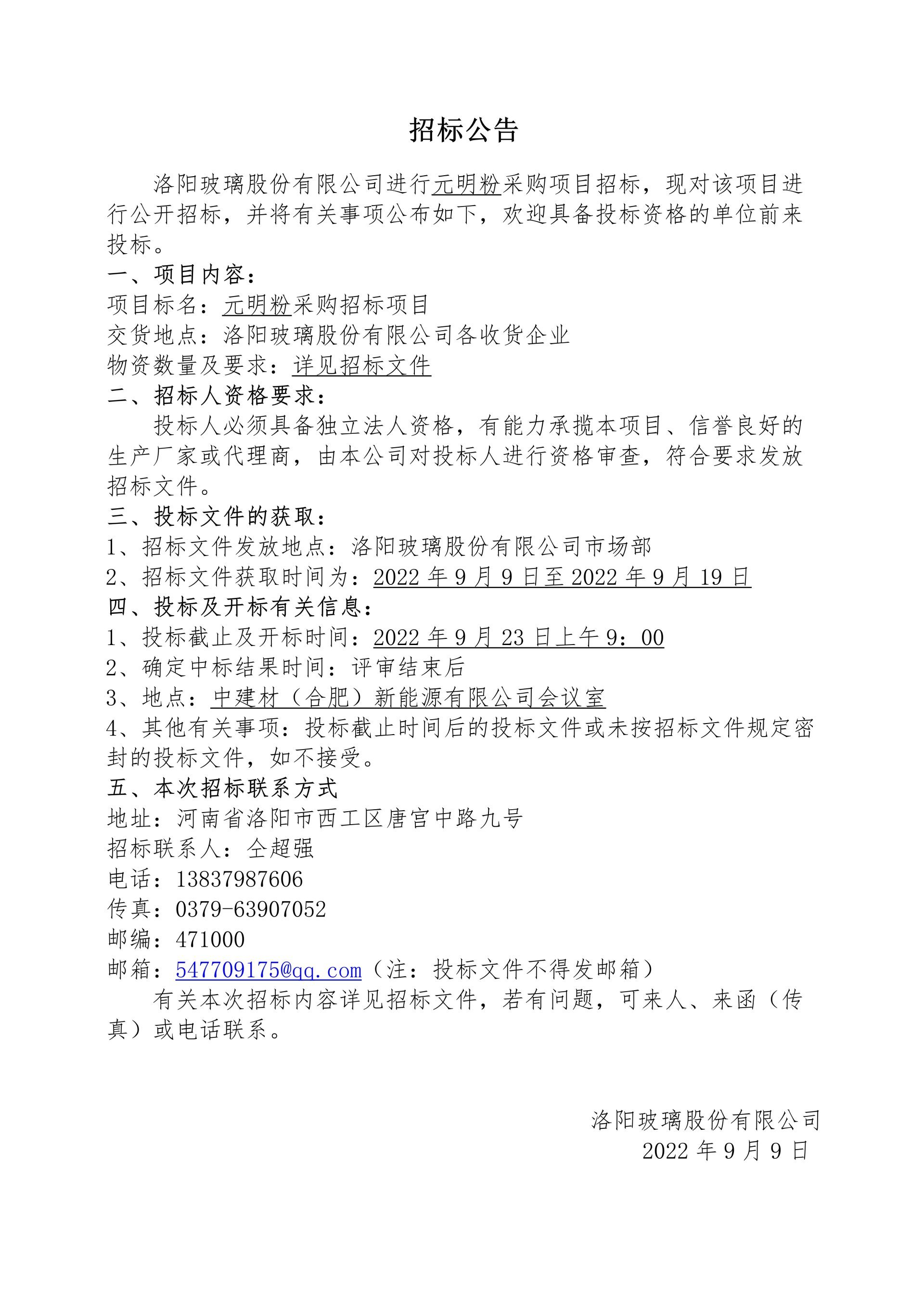 Tender Announcement for Sodium Nitrate Procurement Project of Luoyang Glass Co., Ltd