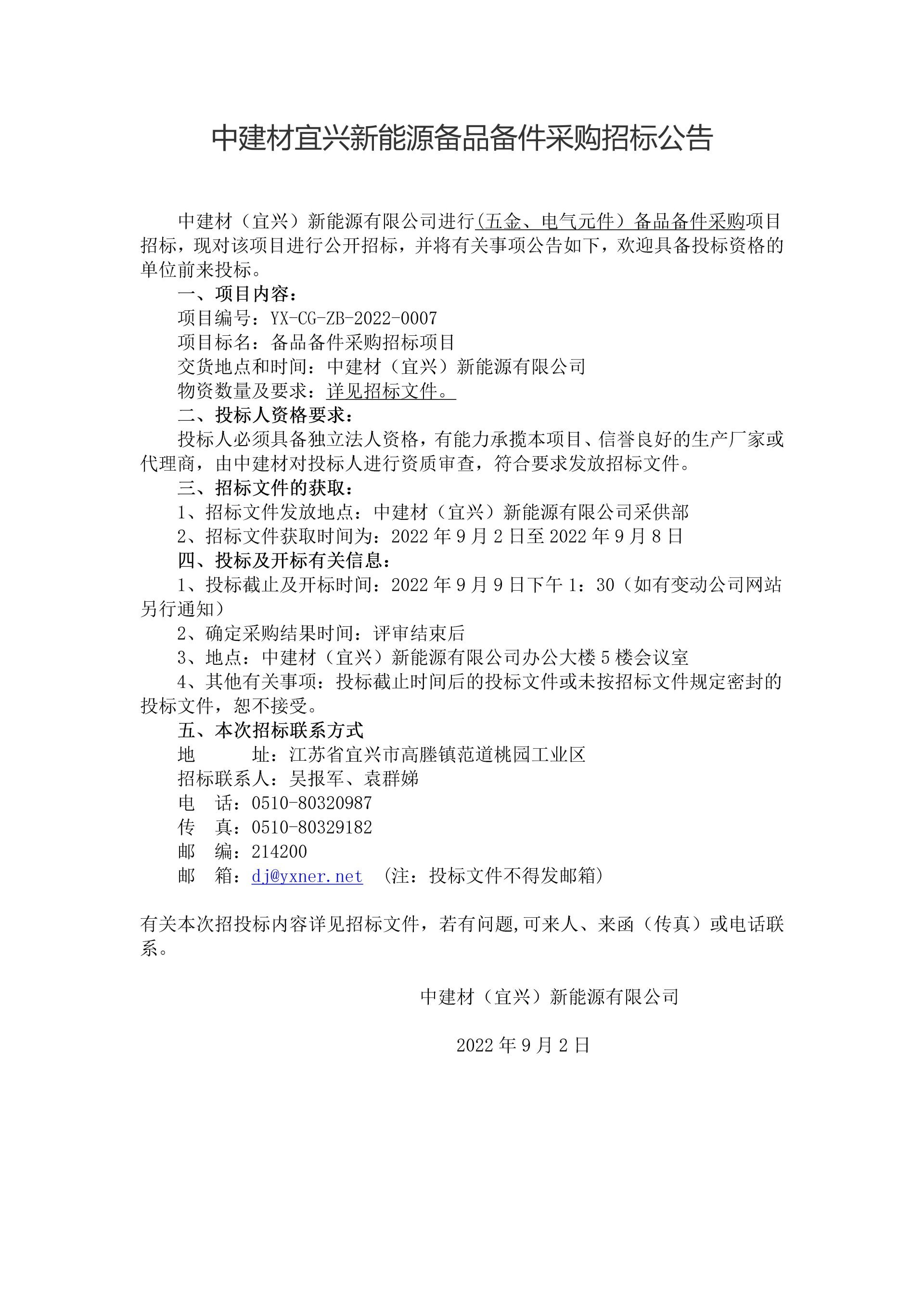 Tender Announcement for the Construction Project of Binding Bricks on the Walls of the First and Second Kilns of China National Building Materials (Yixing) New Energy Co., Ltd