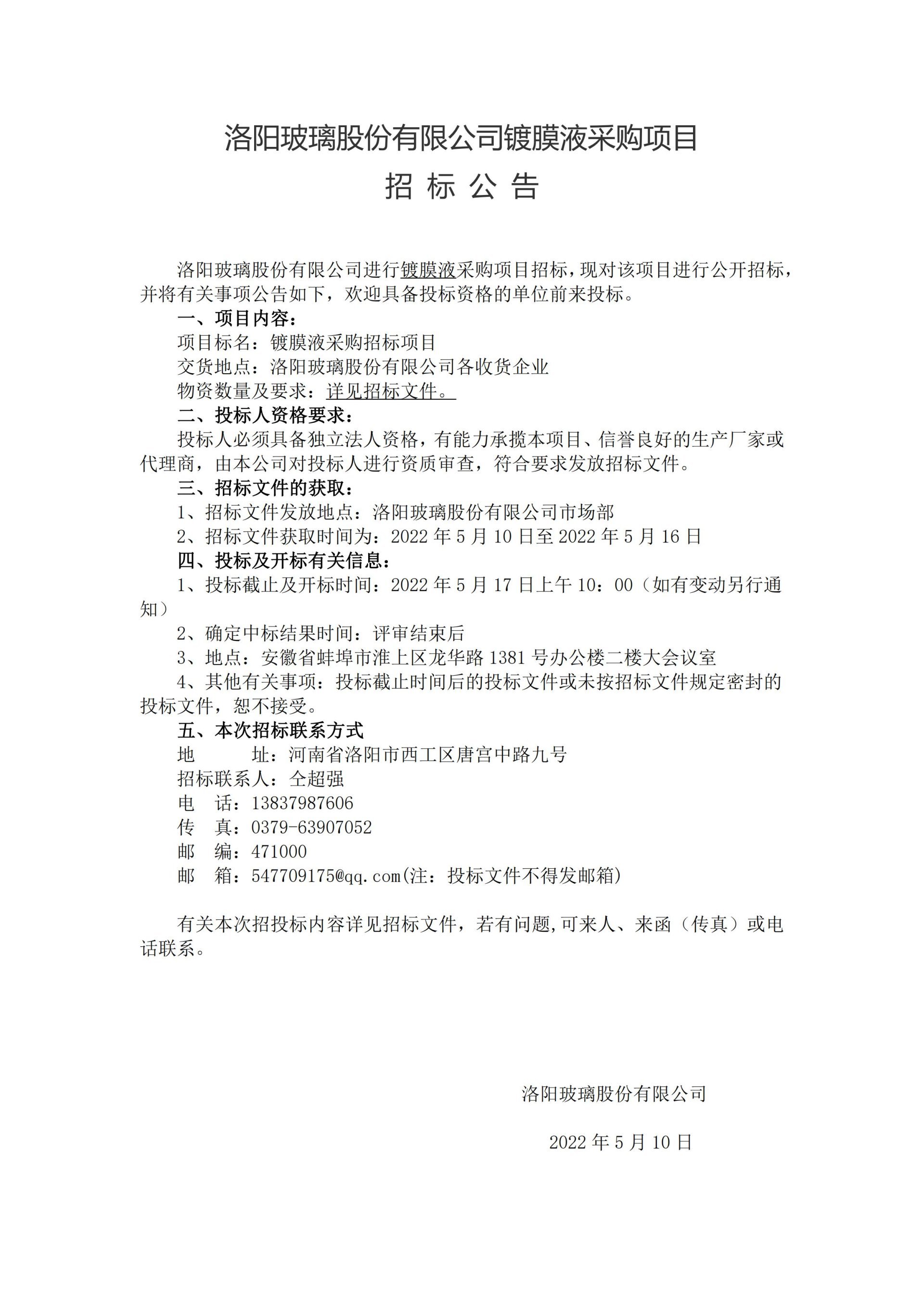 Luoyang Glass Co., Ltd. Coating Roll Adhesive Procurement Bidding Announcement