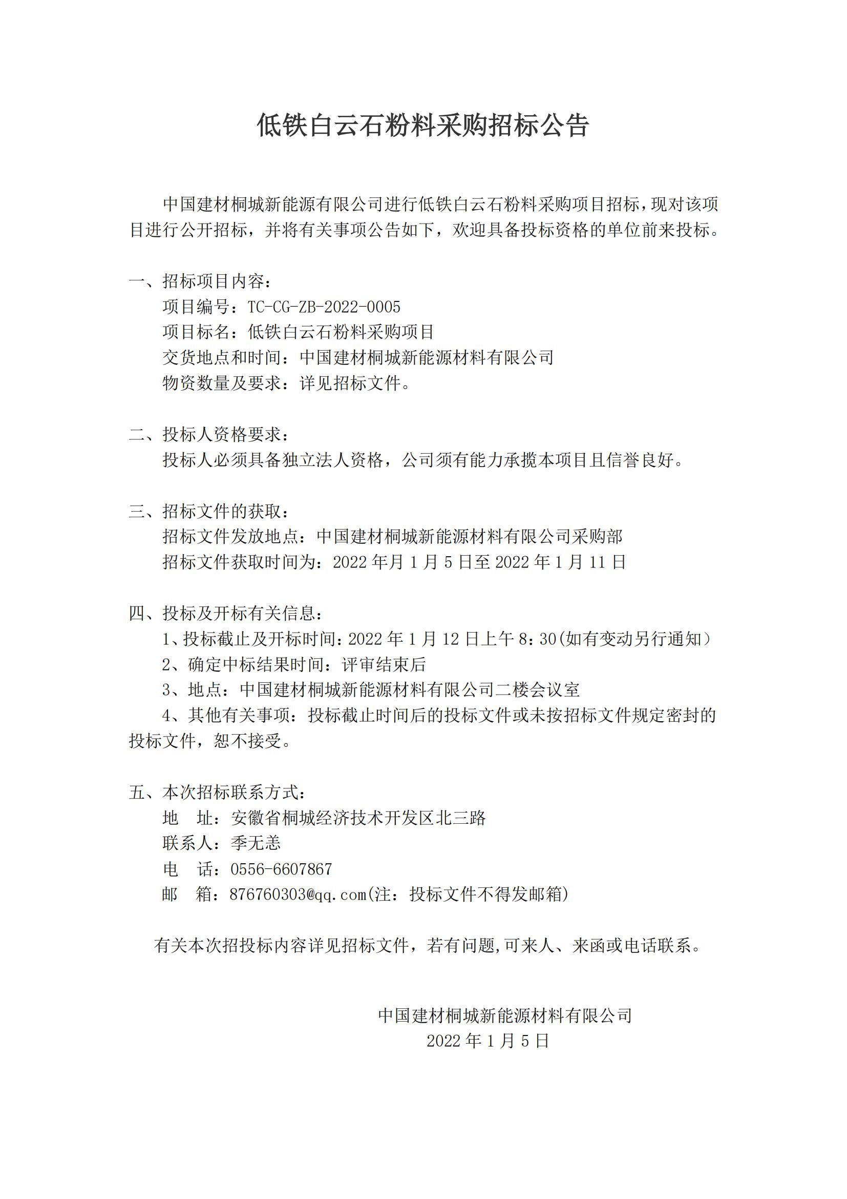 Announcement of Bidding for Fuel Oil Procurement Project by China Building Materials Tongcheng New Energy Co., Ltd