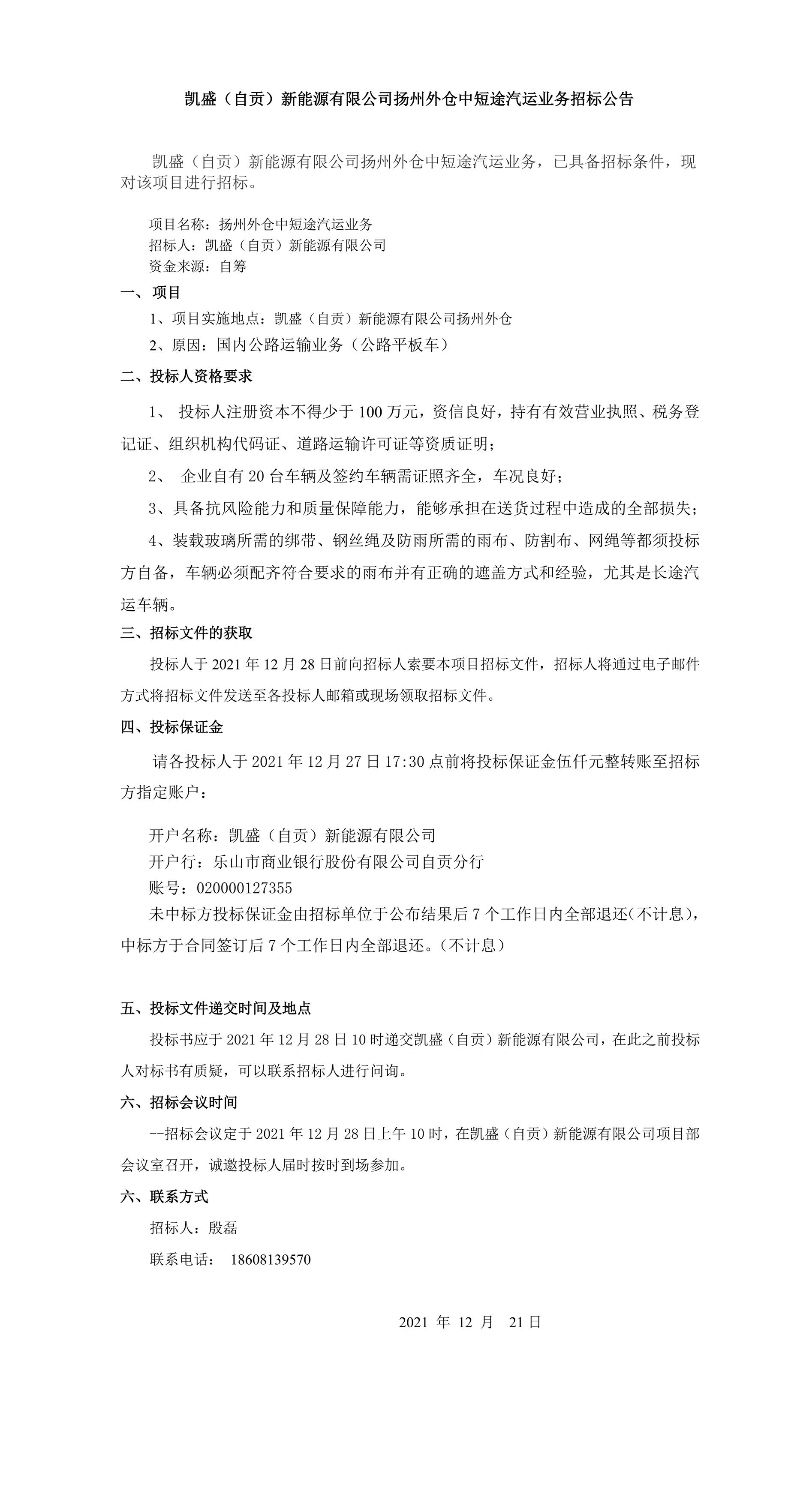Announcement of Bidding for 2022 Direct Electricity Purchase Project of Capvision (Zigong) New Energy Co., Ltd