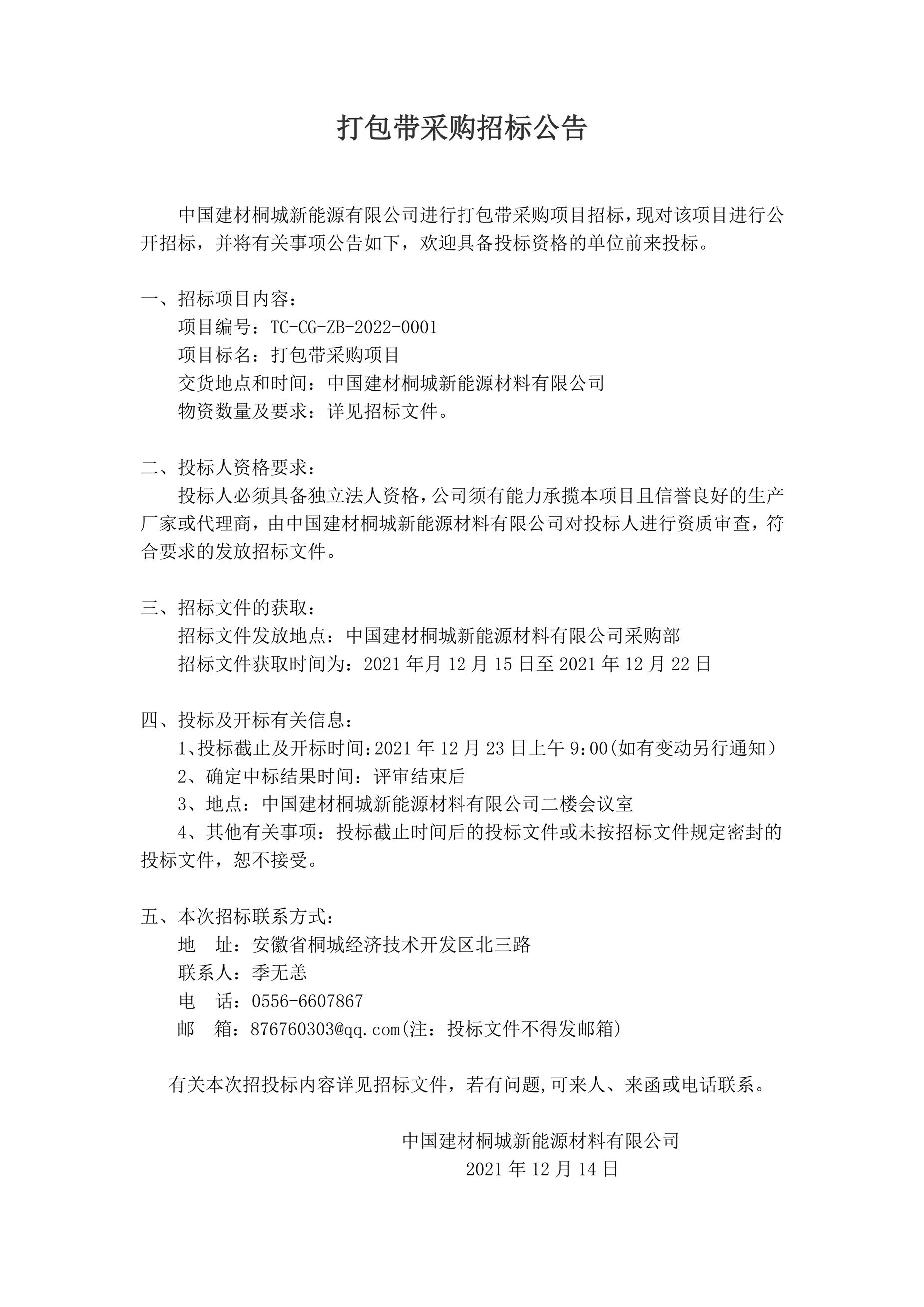 Bidding announcement for the procurement project of anti-mildew paper by China Building Materials Tongcheng New Energy Co., Ltd